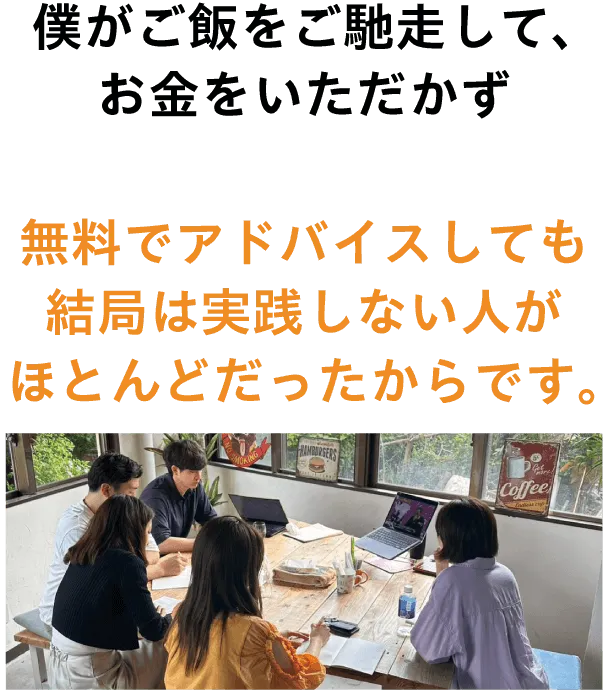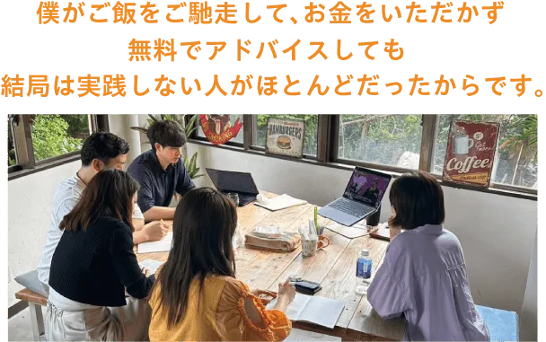 個別コンサルティングでは、毎回、僕が個別に時間をとってマンツーマンでコンサルティングしています。