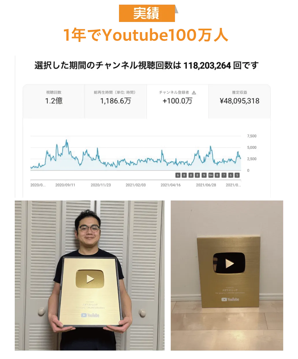 5ヶ月目で収益化、6ヶ月目でチャンネル登録1万人達成、10ヶ月目で50万人達成